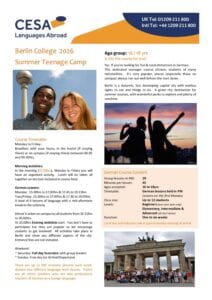 Learn German in Berlin on a Summer Camp with other teenagers, 16/18yrs, in 2026